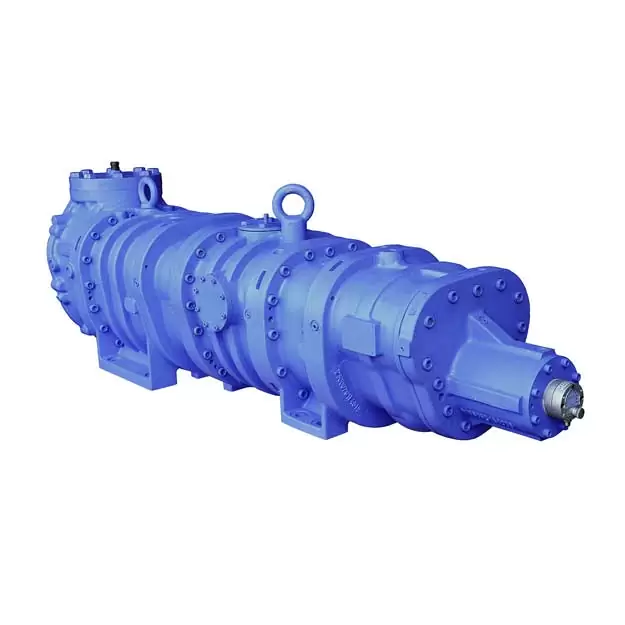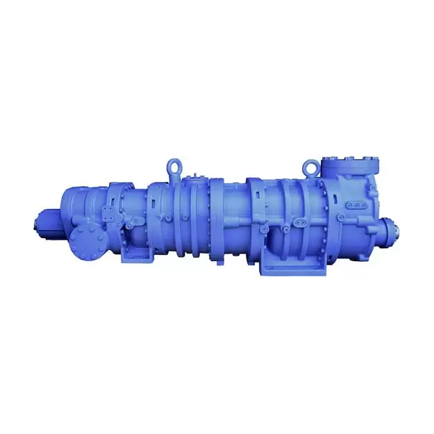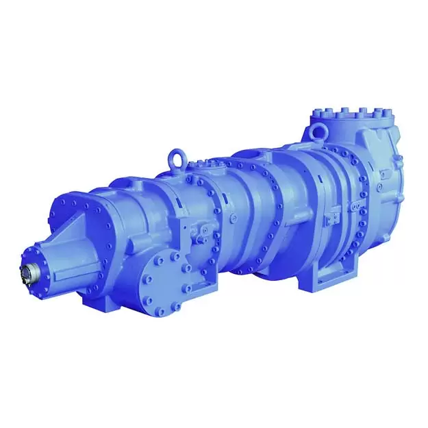 کمپرسورهای اسکرو دو مرحلهای از نوع باز SRM شامل ۴ سری با مجموع ۳۲ مدل هستند که ظرفیت جابجایی آنها از ۵۲۹ تا ۷۷۲۳ مترمکعب در ساعت در سرعت ۳۶۰۰ دور بر دقیقه متغیر است. این کمپرسورها بهطور خاص برای کاربردهای دمای پایین طراحی شدهاند؛ کاربردهایی که بهطور سنتی با سیستمهای بوستر (تقویتی) اجرا میشدند. در صورتی که نیازی به بار جانبی برای مرحله بالا در سیستم بوستر نباشد، این کمپرسورهای دو مرحلهای راهحلهایی بسیار فشرده و کارآمد ارائه میدهند.