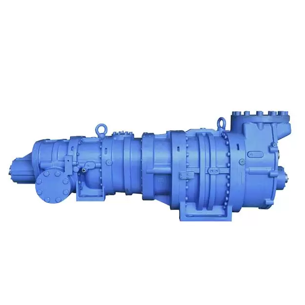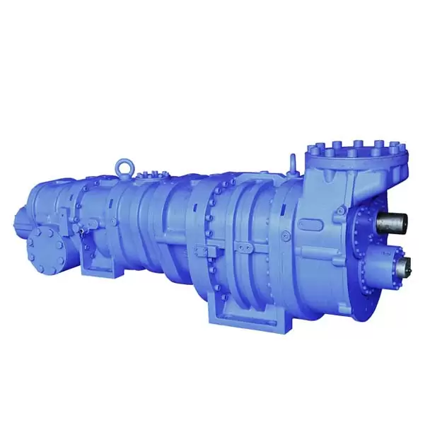 کمپرسورهای اسکرو دو مرحلهای از نوع باز SRM شامل ۴ سری با مجموع ۳۲ مدل هستند که ظرفیت جابجایی آنها از ۵۲۹ تا ۷۷۲۳ مترمکعب در ساعت در سرعت ۳۶۰۰ دور بر دقیقه متغیر است. این کمپرسورها بهطور خاص برای کاربردهای دمای پایین طراحی شدهاند؛ کاربردهایی که بهطور سنتی با سیستمهای بوستر (تقویتی) اجرا میشدند. در صورتی که نیازی به بار جانبی برای مرحله بالا در سیستم بوستر نباشد، این کمپرسورهای دو مرحلهای راهحلهایی بسیار فشرده و کارآمد ارائه میدهند.