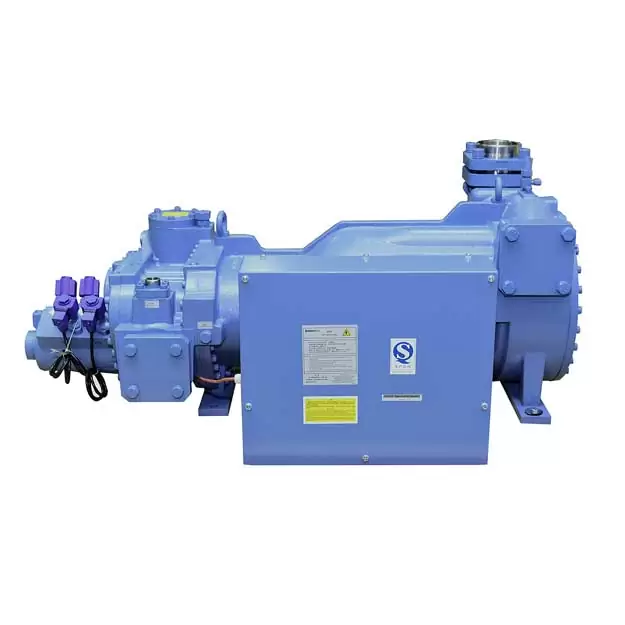 کمپرسورهای اسکرو تکمرحلهای نیمههرمتیک سری SRS شامل ۵ سری با مجموع ۱۴ مدل هستند که ظرفیت جابجایی آنها بین ۸۴ تا ۵۰۰ متر مکعب بر ساعت در ۲۹۶۰ دور در دقیقه میباشد. این کمپرسورها دارای بازه کاربردی وسیعی هستند که امکان استفاده در طیف گستردهای از کاربردها را فراهم میسازد. اگرچه تمامی مبردهای رایج قابل استفاده هستند، این کمپرسورها برای مبردهای طبیعی و سازگار با محیط زیست مانند آمونیاک (R717) بهینهسازی شدهاند.